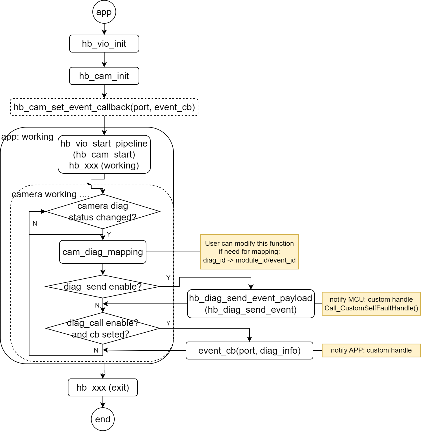 此处的 :ref:`hb_cam_set_event_callback ` 为可选调用,若应用需要处理camera诊断事件,可在初始化完成之后通过该API进行回调注册,之后在有故障发生或恢复时会通过该回调通知应用处理。