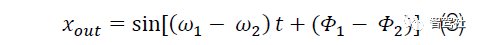 输出 xout 有一个瞬时频率,等于两个输入正弦函数的瞬时频率之差。输出xout 的相位等于两个输入信号的相位之差(方程式 3)