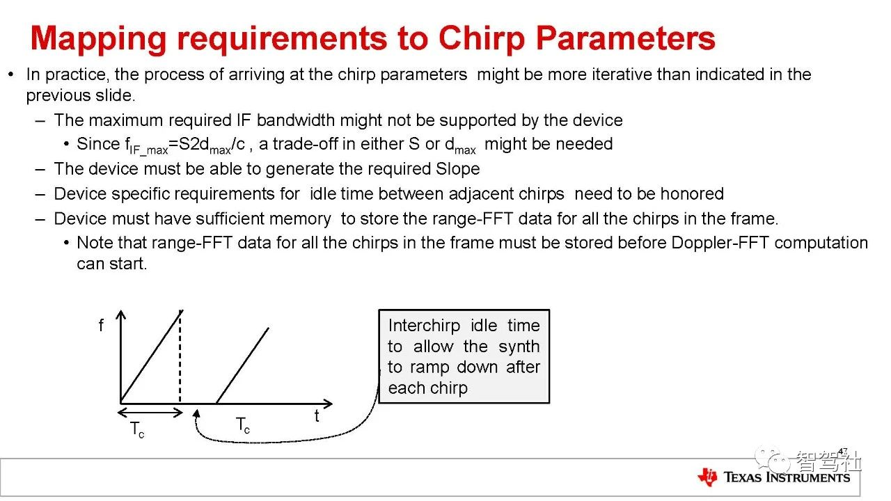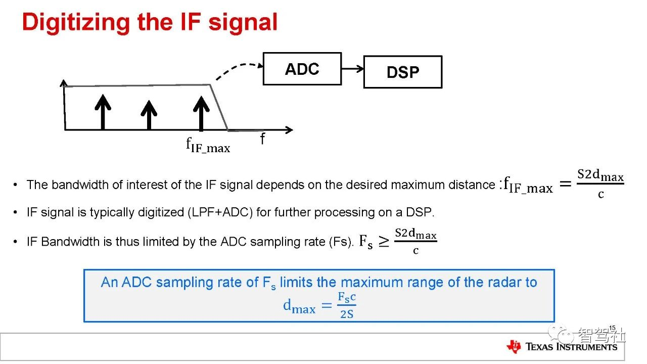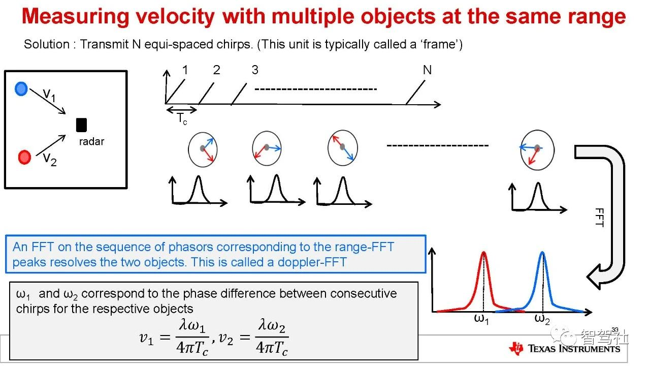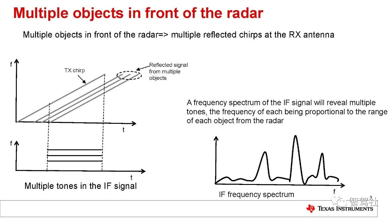 ** 在本介绍中,我们忽略 IF 信号的频率与物体速度的依赖关系。在快速 FMCW 雷达中,其影响通常非常小,且在处理完成多普勒 FFT 后,即可轻松对其进行进一步校正。