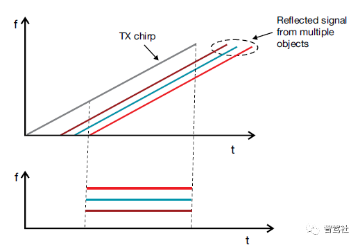 RX 线性调频脉冲转化为多个 IF 单音信号,每个信号频率恒定。