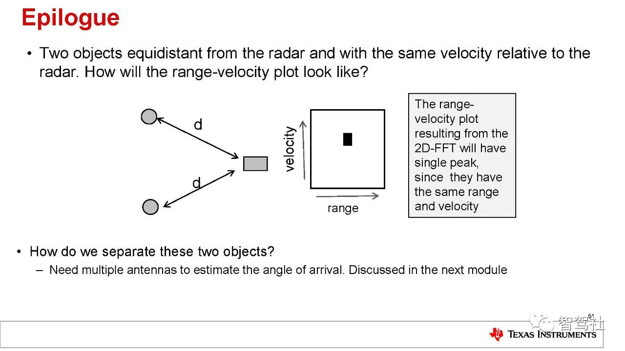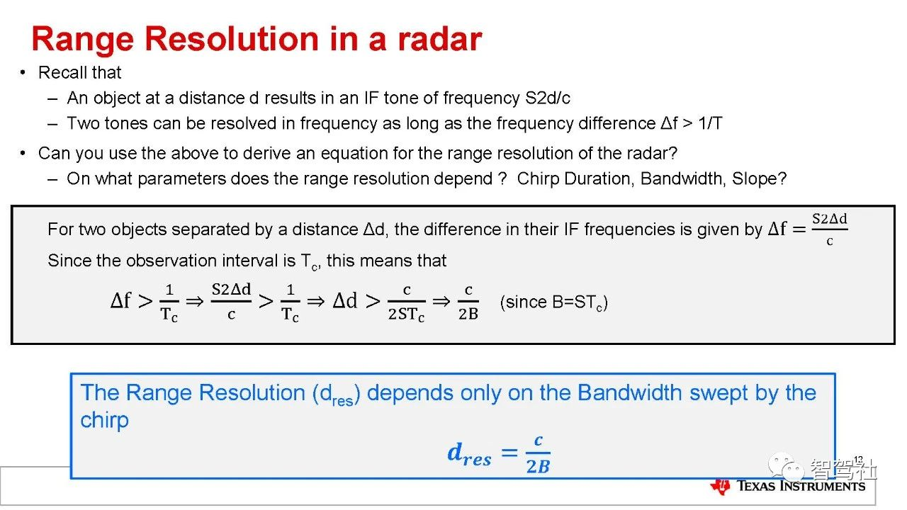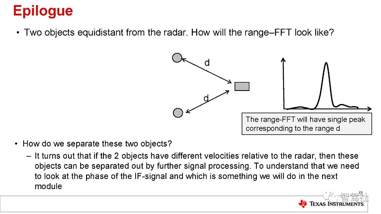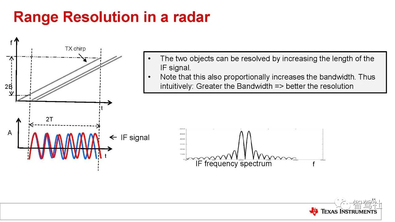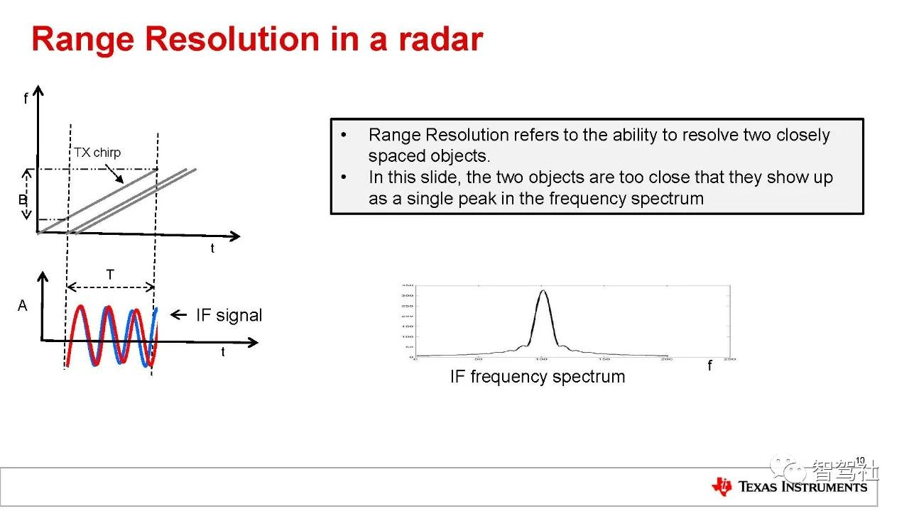 距离分辨率是辨别两个或更多物体的能力。当两个物体靠近到某个位置时,雷达系统将不再能够将二者区分开物体。傅里叶变换理论指出,通过延长 IF 信号,可以提高分辨率。