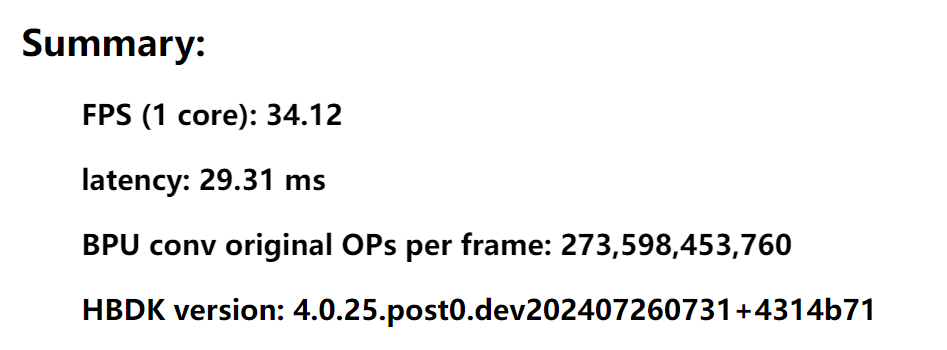 在 1 个 BPU 内核上运行时的估计 FPS。
