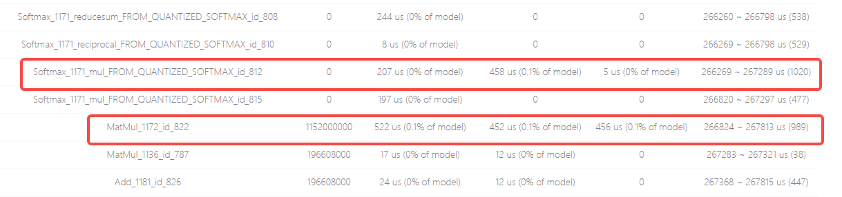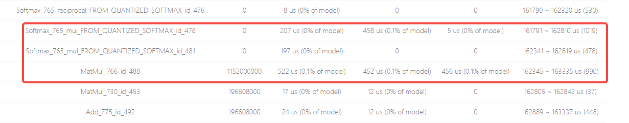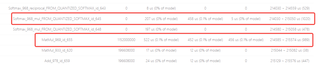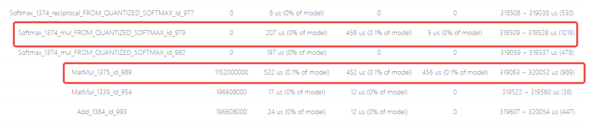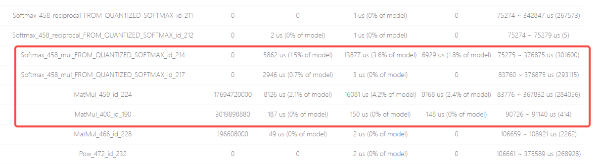综合以上分析结果可知,此模型中引起性能问题的是Softmax和MatMul算子组成的子结构,在下一篇文章中,笔者将介绍模型性能相关的优化策略。