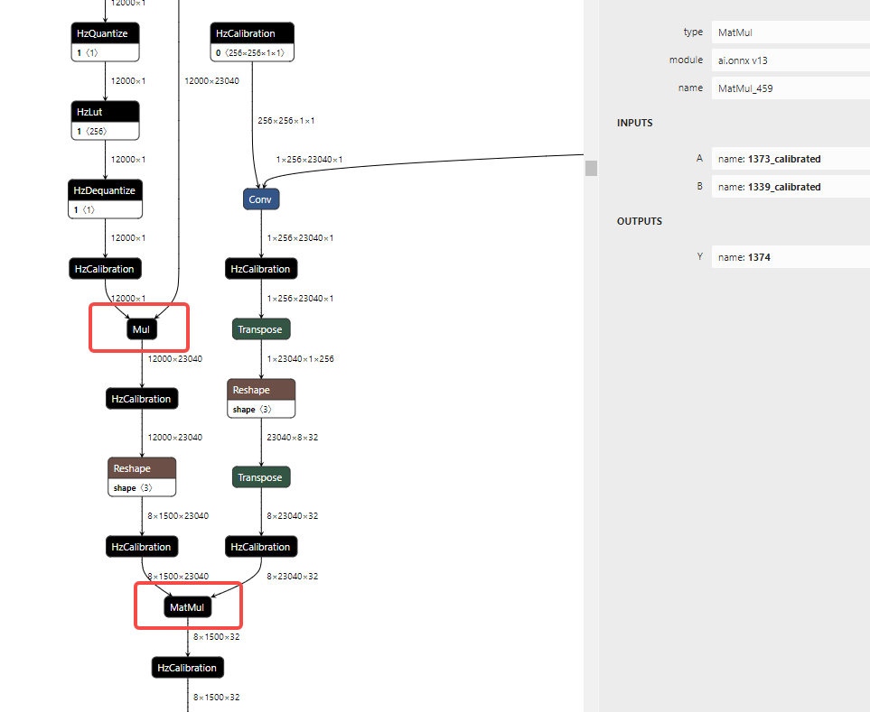 可以看到引起带宽瓶颈的算子的Softmax_458_mul、MatMul_459,onnx模型中对应的子结构为: