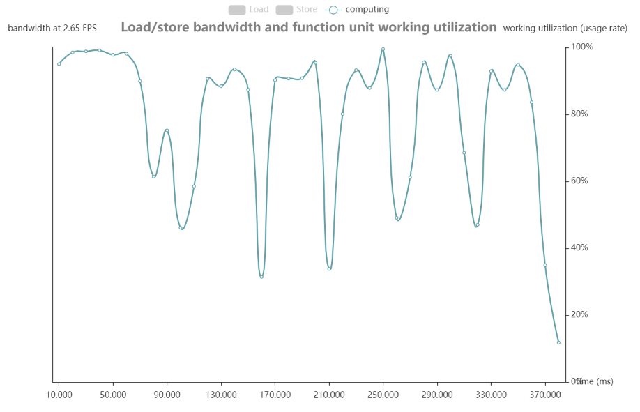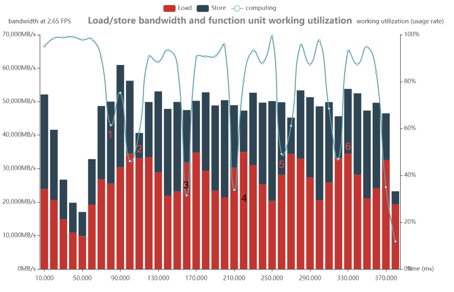观察load&store柱状图,配合computing曲线,判断是否有带宽瓶颈