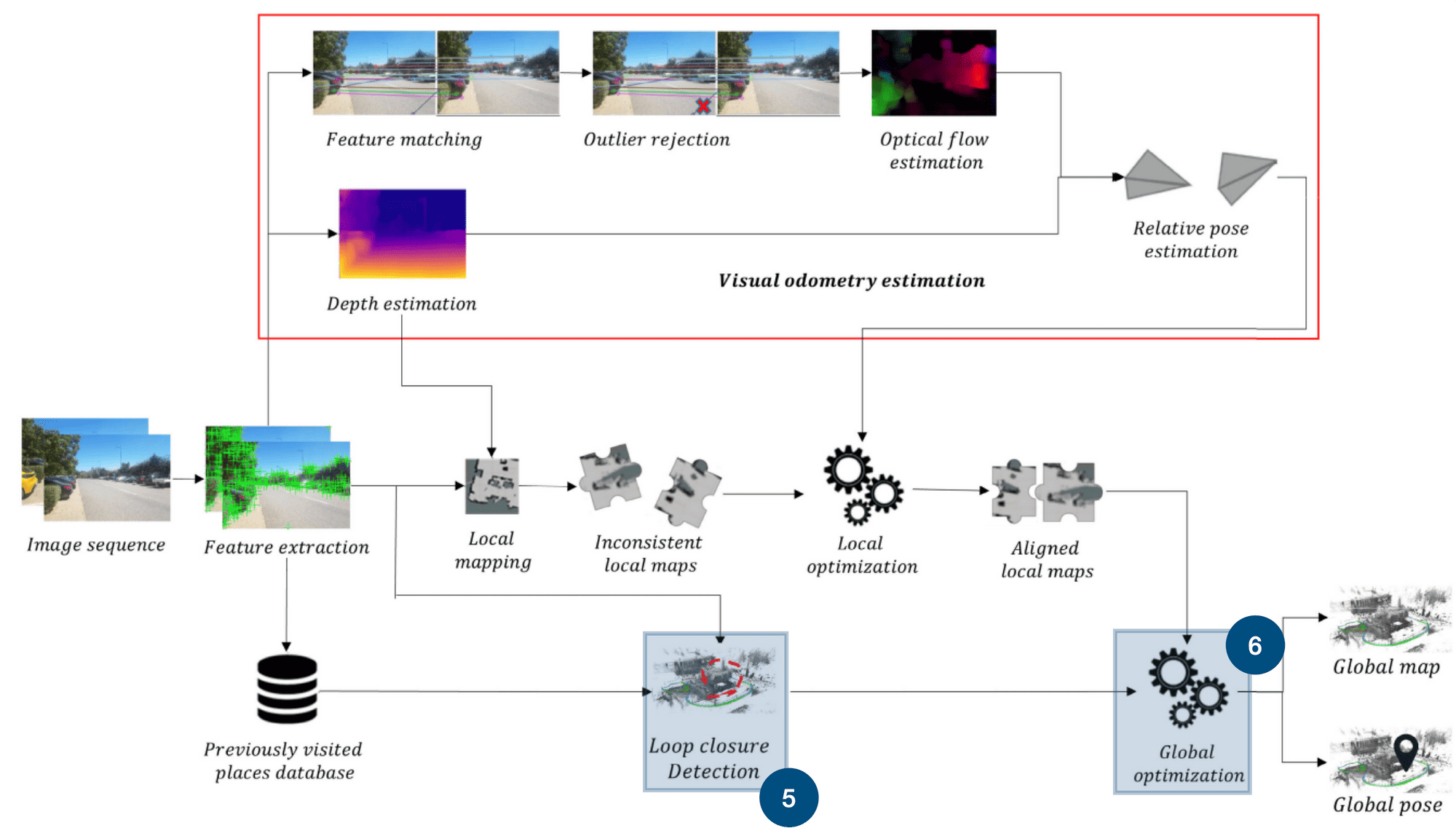 以下是 6 个步骤,请注意我们是如何从图像自然流向地图和姿势的!让我们来做最后的分解:
