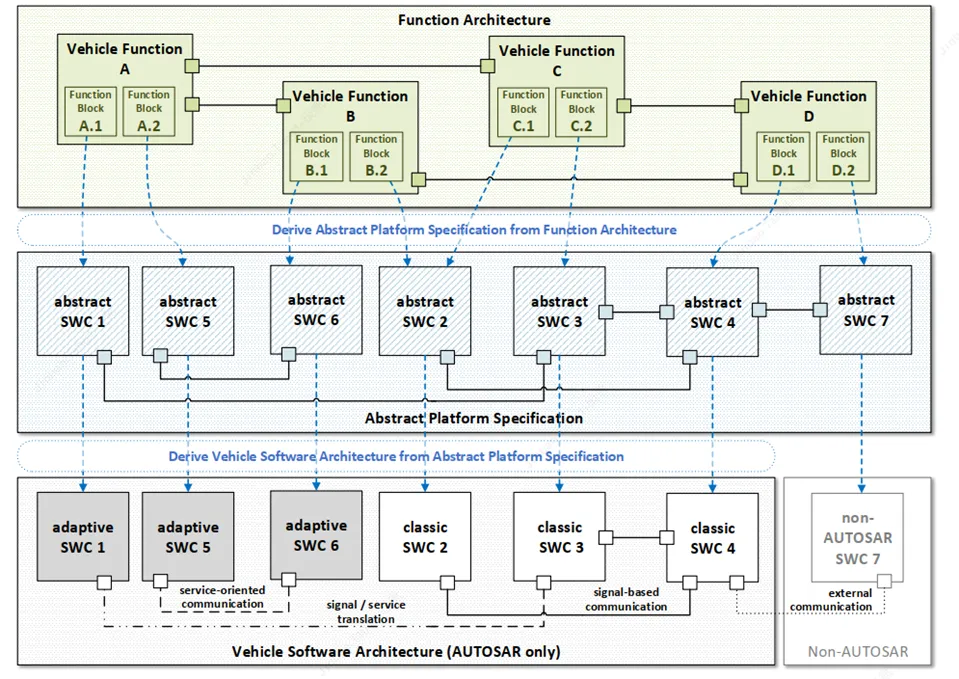 在《从“非软件”角度看 AUTOSAR CP》中有过描述,如何从定义功能、实现、部署。摘录如下: