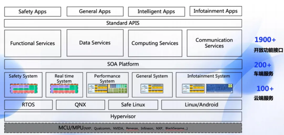 AP(代替所有 soc 中间方案)是动态分配资源的,面向服务的,有需要了再分配,这样能节省资源,降低成本,方便使用。SOA 软件构架下的底层软件也就是“服务”,具有接口标准化、相互独立、轻耦合三大特点。
