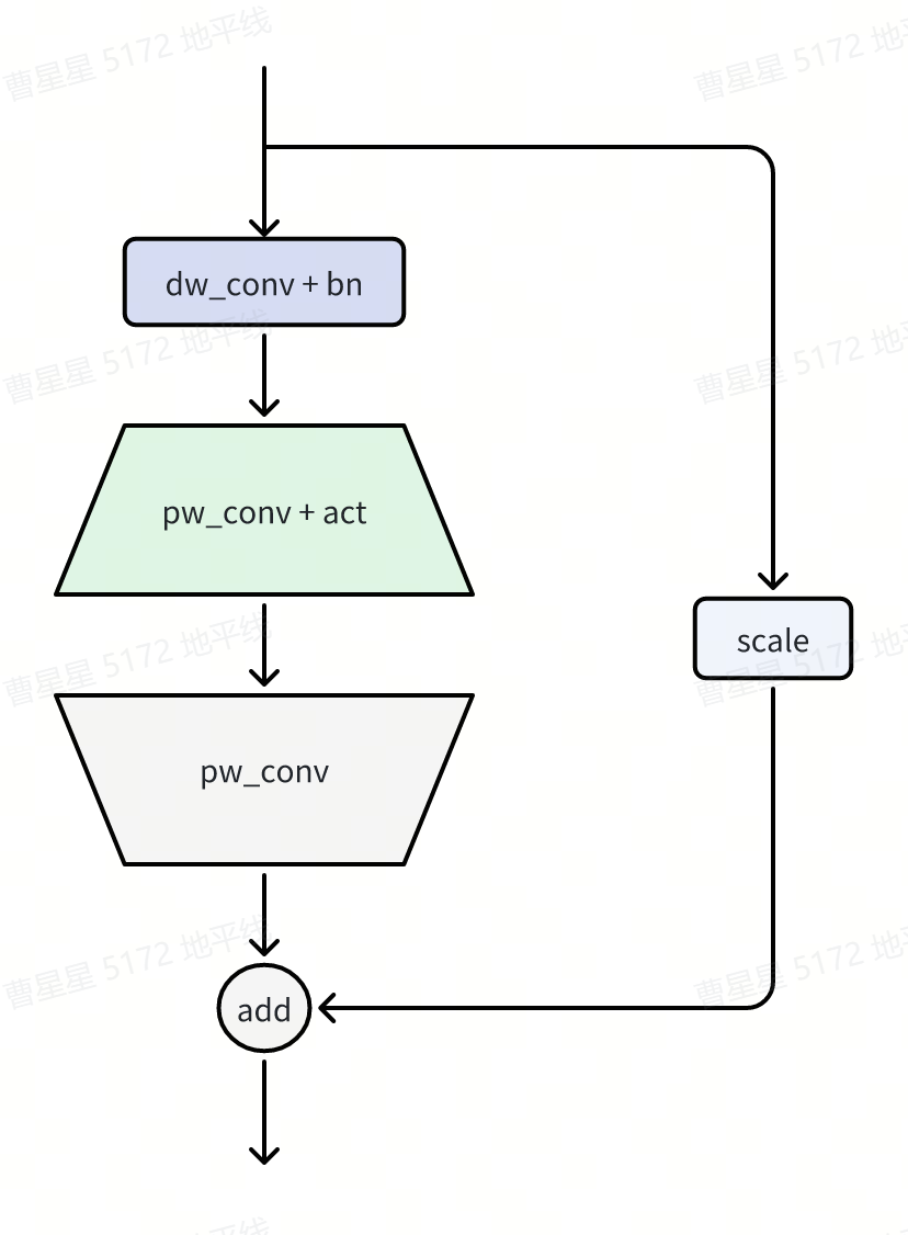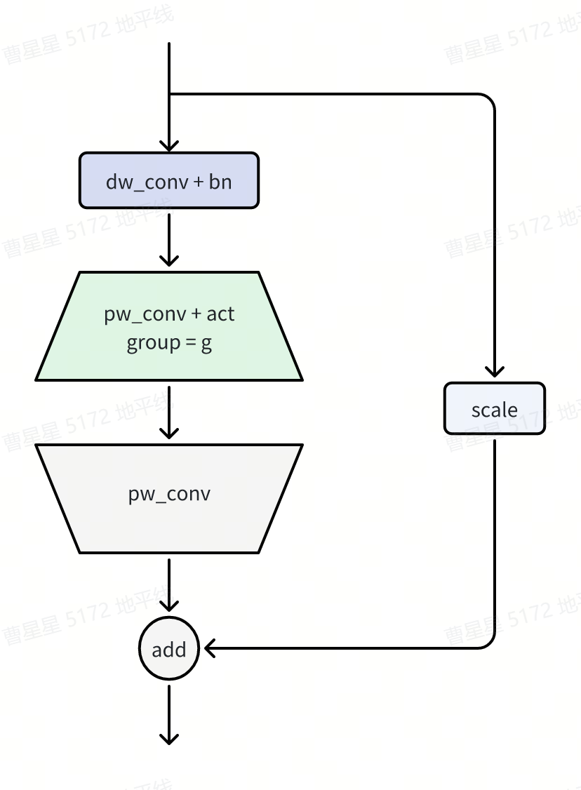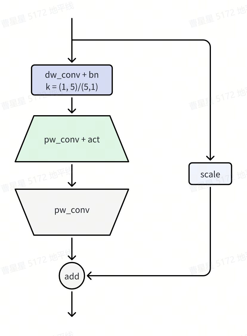 AltDWCB 是基于 DWCB 的一个变种,相比 DWCB,AltDWCB 将主分支的 depthwise 卷积的 kernel 改为了(1,5)或者(5,1),根据 block 所在层次位置交替使用。在我们的实验中,使用 AltDWCB 构建第三个 stage 将带来一定的定能提升。我们推荐在层数较多的 stage 尝试交替使用 AltDWCB。