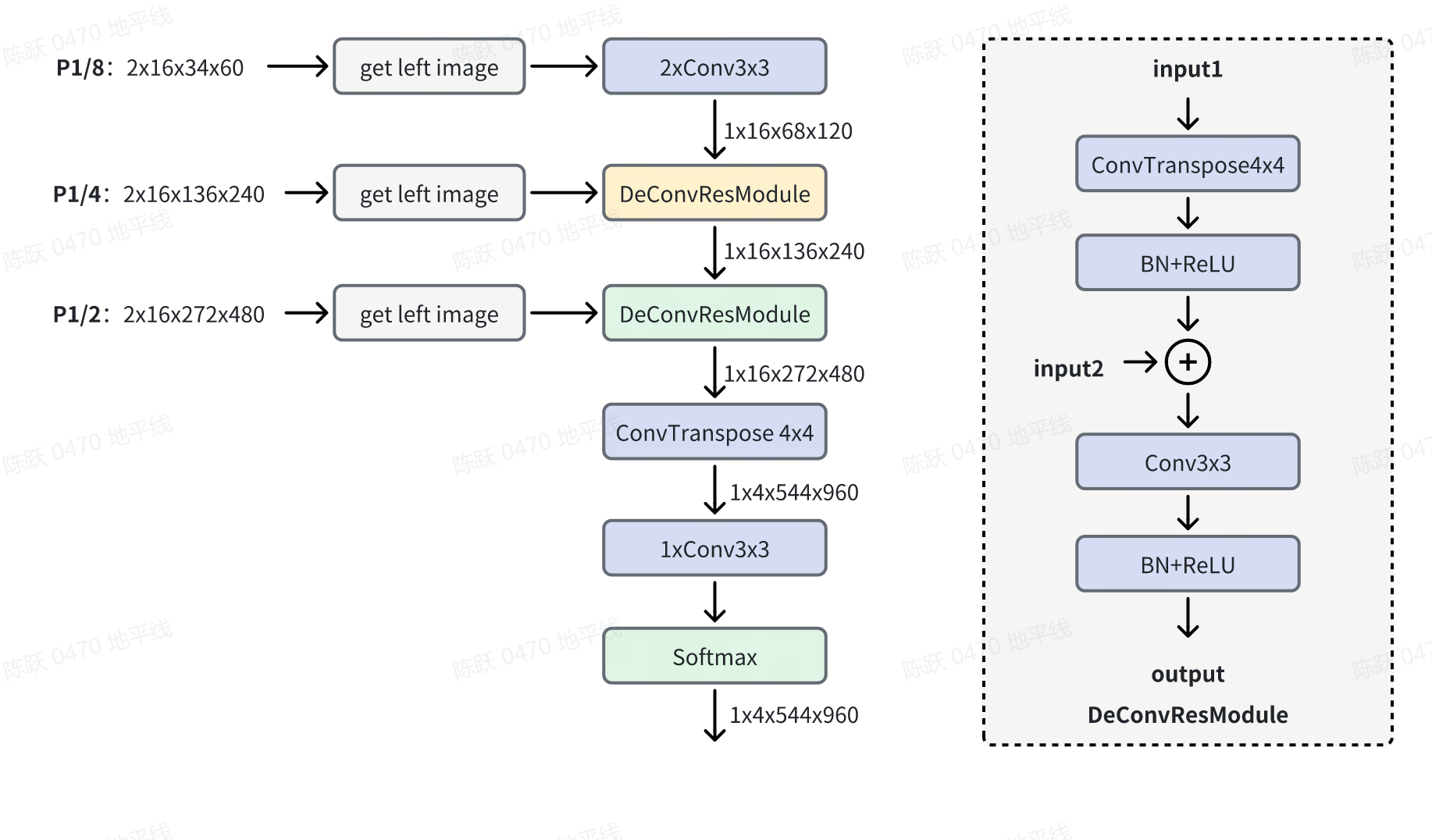 CoEx使用DeconvResModule融合P1/2、P1/4、P1/8的左图特征,从而获得原始图像分辨率下的视差权重。