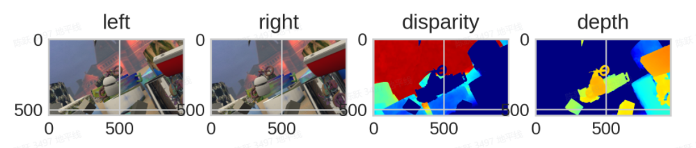 可视化结果从左至右为:left左图、right右图、disparity视差图、根据视差计算的depth深度图;