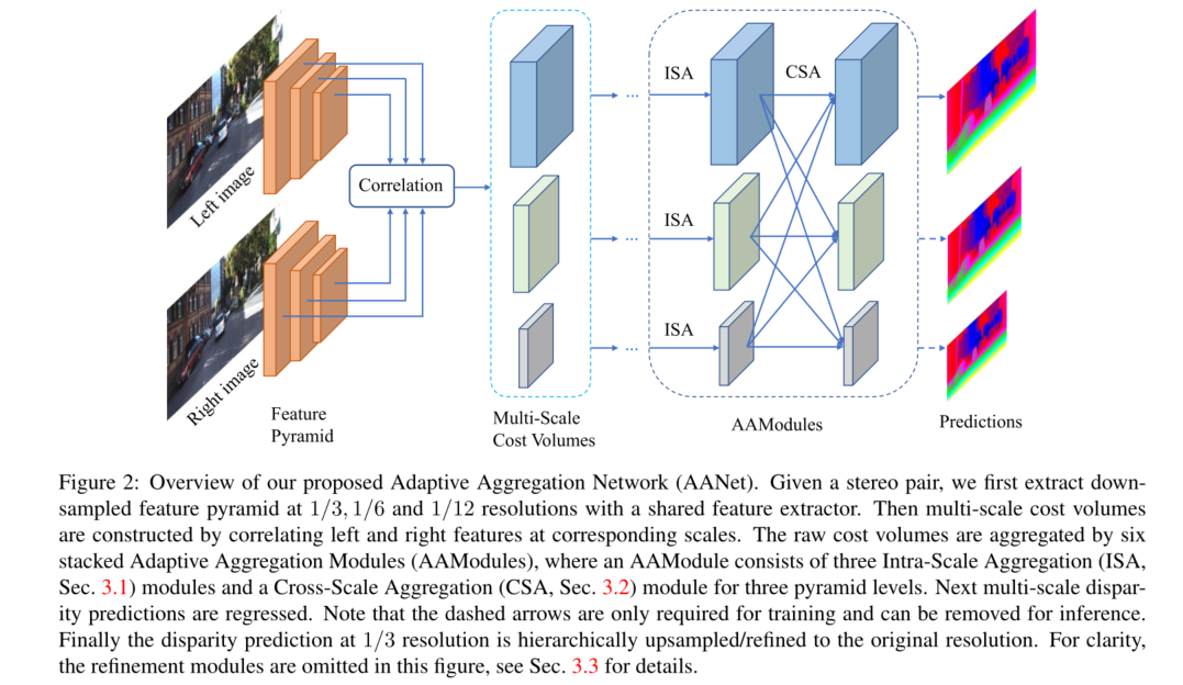 和自适应跨尺度聚合模块(Adaptive Cross-ScaleAggregation)来实现成本聚合。并且使用特征相关性而不是concat的方式构造多尺度Cost Volume。