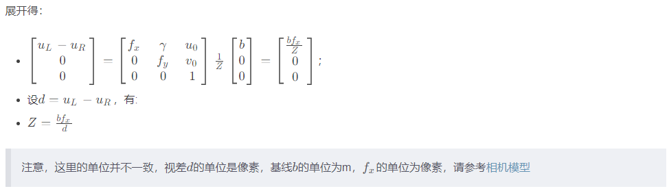 f为相机焦距,B为两相机中心距,Z为我们想求得的深度信息。