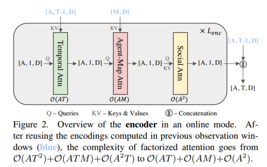 编码器:对输入的场景元素进行编码,采用了目前流行的factorized attention实现了时间维度attention、Agent-Map cross attention和Agent与Agent间隔的attention;