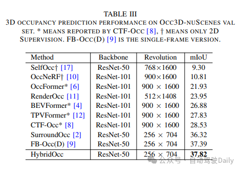 [1] HybridOcc: NeRF Enhanced Transformer-based Multi-Camera 3D Occupancy Prediction.