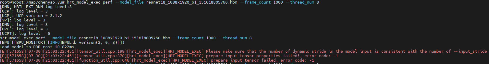 解决:hrt_model_exec perf --model_file resnet18_1088x1920_b1_151618805760.hbm --frame_count 1000 --thread_num 8 --internal-use --profile_path ./