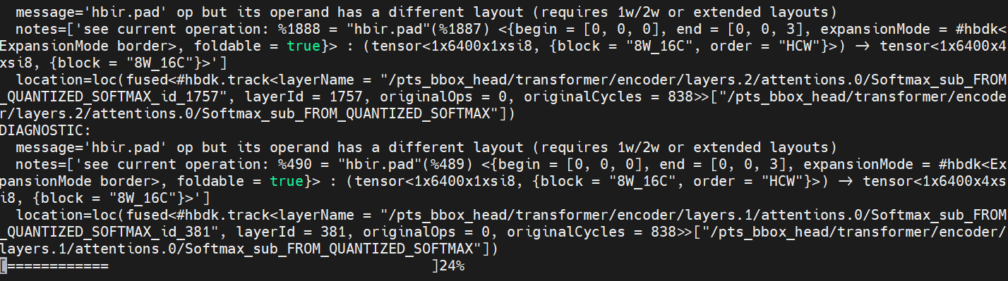 问题:BEVFormer模型编译时转换进度卡在17%不动了,CPU占用率很低,内存占用一直不动。hb_compile --fast-perf --model bevformer_tiny_resnet18.onnx --march nash-e