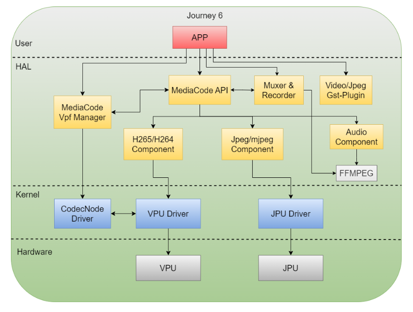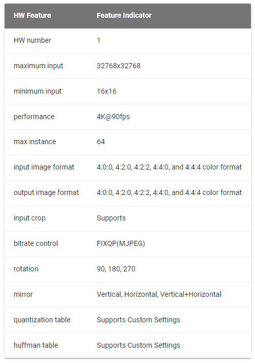Codec(Coder-Decoder)是指编解码器,用于压缩或解压缩视频、图像、音频等媒体数据;J6 Soc中存在两种硬件编解码单元,分别是VPU(Video process unit)和JPU(Jpeg process unit),可提供4K@90fps的视频编解码能力和4K@90fps的图像编解码能力。