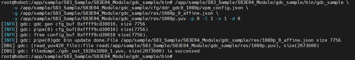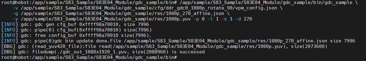 - ``-g`` 参数 ``/app/sample/S83_Sample/S83E04_Module/gdc_sample/res/1080p_0_affine.json`` 代表GDC的配置文件所在位置,json里面的具体配置可参考GDC配置文件说明。