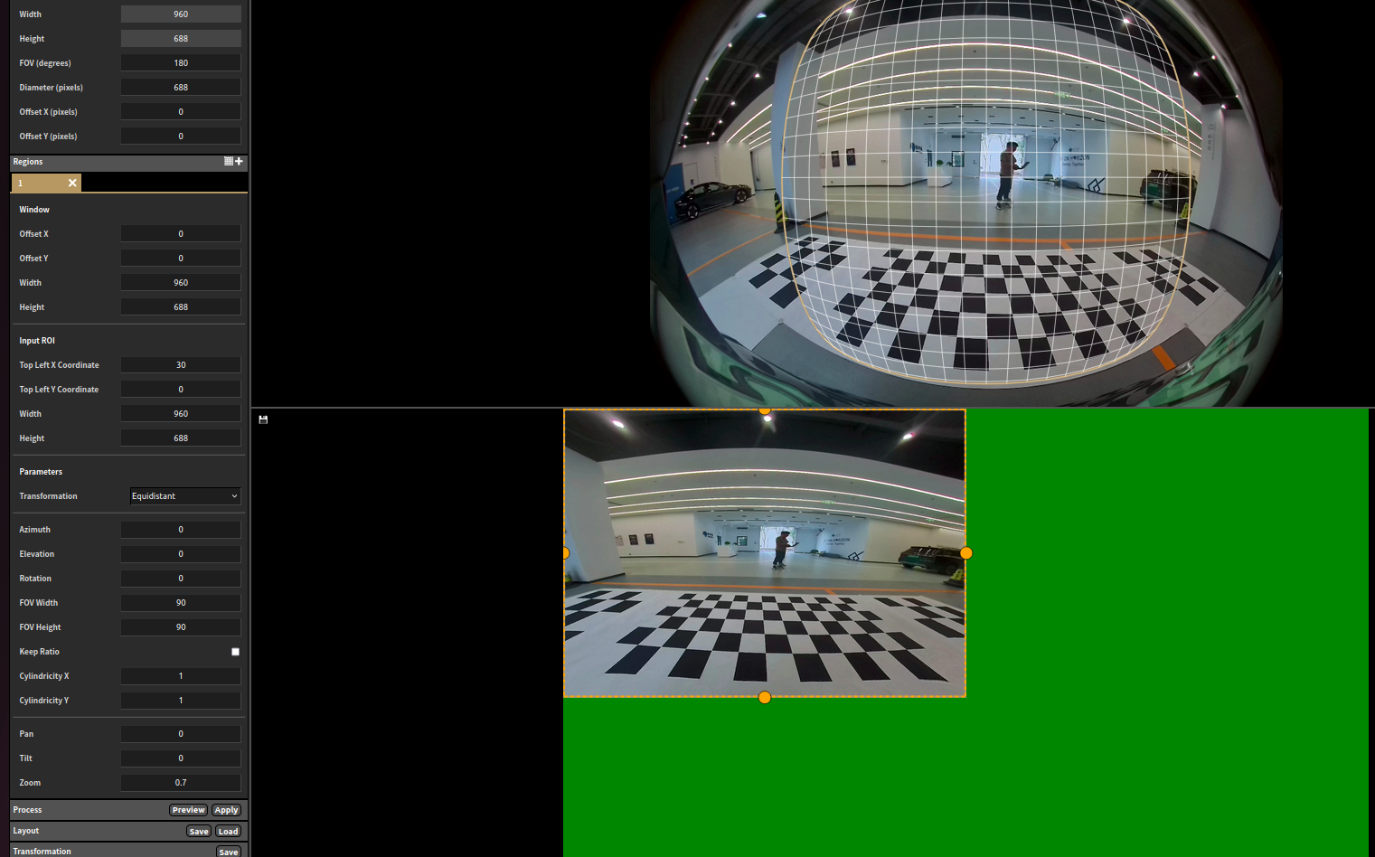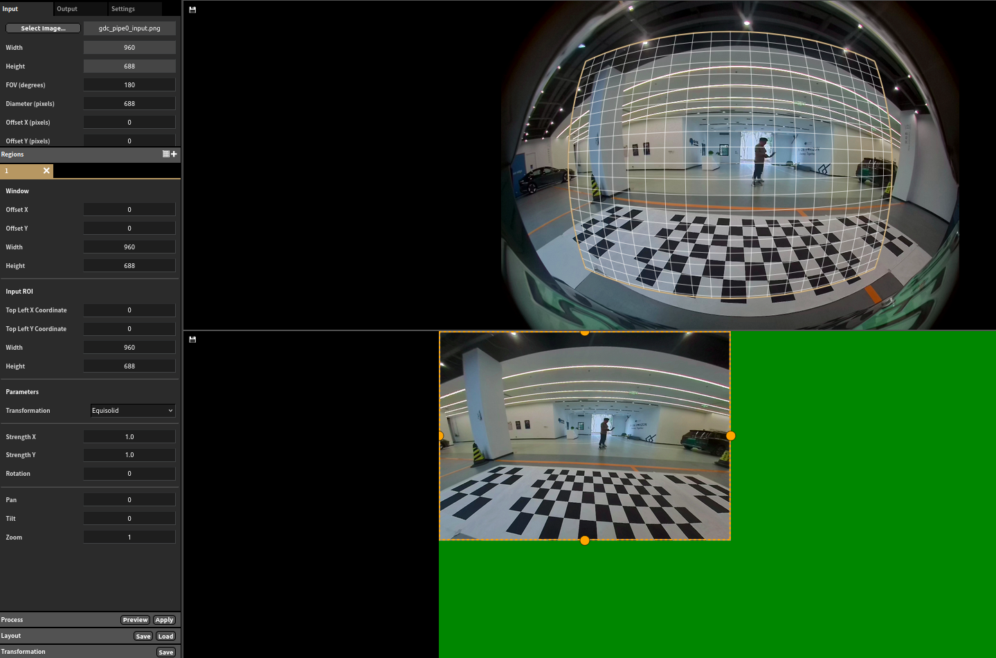 Process: preview可以查看变换网格区域,apply为执行图像变换;