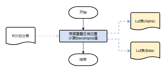 LUT表存放的是alpha/beta融合参数系数,类似权重值,每个ROI都要生成对应像素点的融合参数系数,范围0-255,依次存放进LUT表的内存中, 当ROI的拼接模式使用alpha和beta融合时候,会使用该参数进行融合。