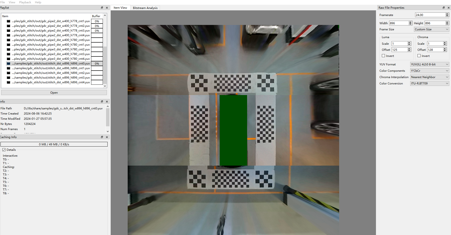 本文的demo sample采用回灌流程,即从系统存储中读取文件作为GDC的输入图像,调用VIO API,基于GDC配置bin文件完成GDC处理,再通过videostitch API和对应的拼接LUT表文件实现对GDC输出图像的拼接,得到鸟瞰图。