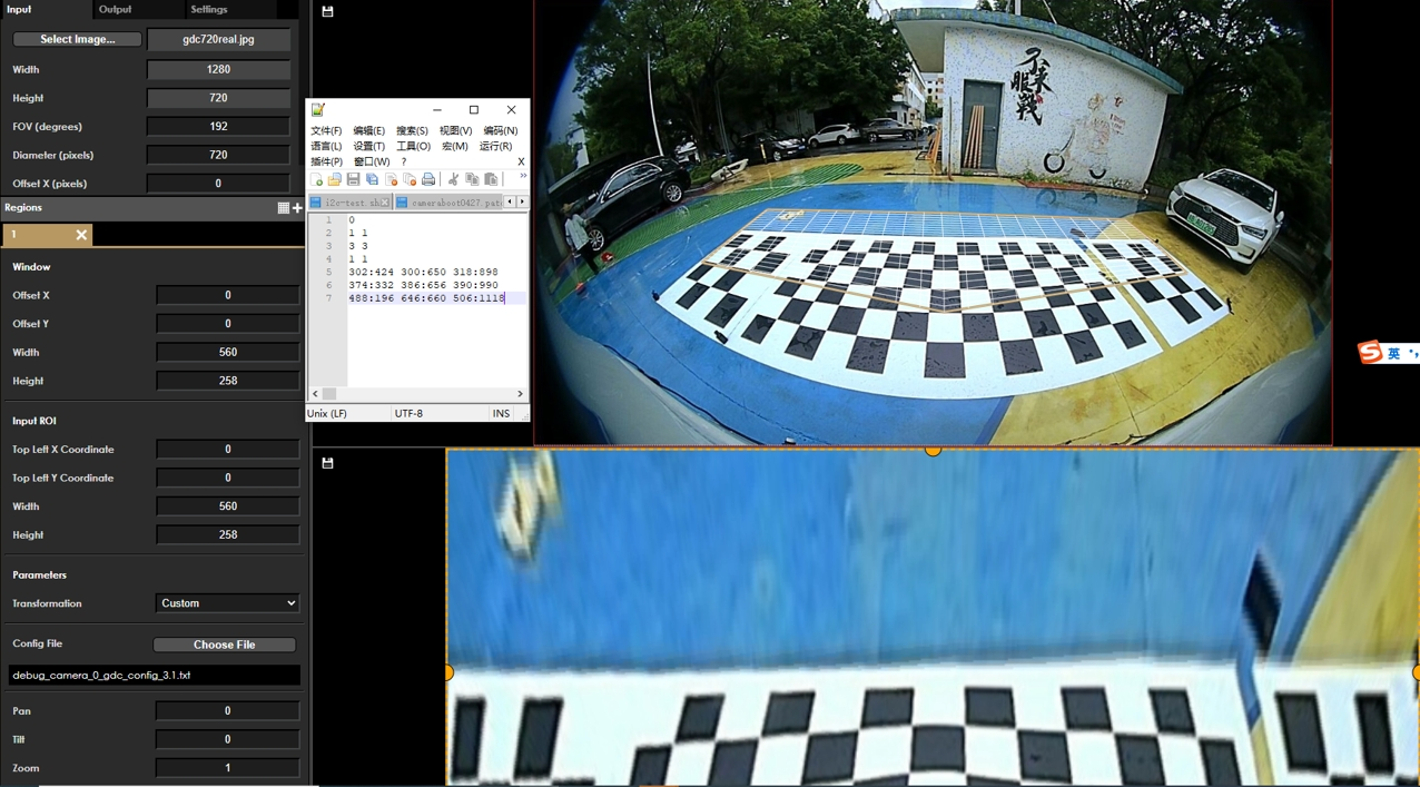 GDC GUI TOOL是一种可在PC上进行处理效果仿真的工具。用户可准备jpg模式的图像,load到gdc-tool中进行离线校正,校正完成后可以直接保存config.bin文件用于硬件校正,也可用保存layout.json文件生成config.bin进行硬件校正。