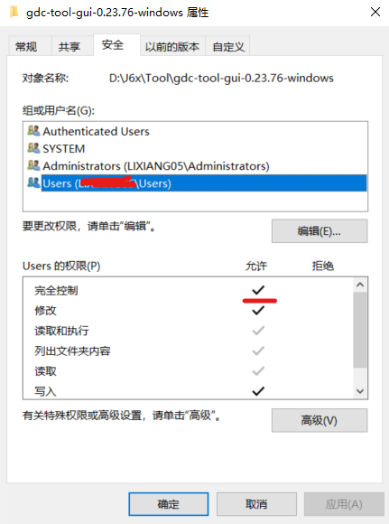 官网下载nodejs并配置好环境变量后,*参考https://blog.csdn.net/Nicolecocol/article/details/136788200,进入GDC工具文件目录下(tools/dev-j6-tool-1.6/j6_tools_016/windows_ui/gdc_tool/gdc-tool-gui-xxxx-windows),将该文件夹权限设置成完全控制: