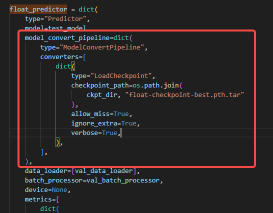 float_predictor["model_convert_pipeline"]如下,加载了浮点的ckpt: