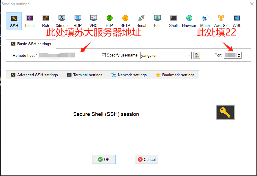 打开MobaXterm,新建Session,点击左上角SSH。