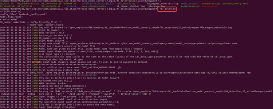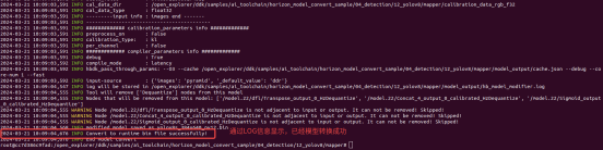 转换模型:准备完校准数据和yaml配置文件后,即可一步命令完成模型解析、图优化、校准、量化、编译的全流程转换, 内部过程详解请参考地平线文档 3.2.3.3. 转换模型