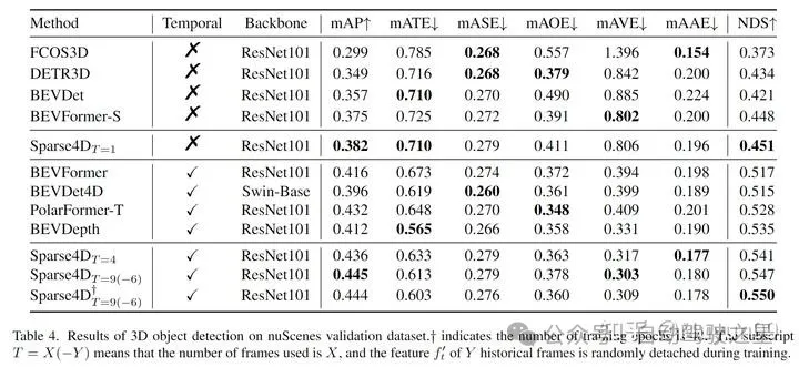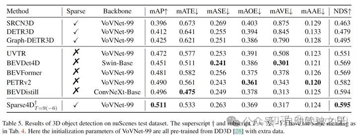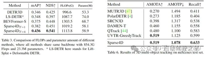 Table 3~5:性能、参数、计算量的对比中,Sparse4D 做到了把比较好的 Tradeoff,在性能较高的同时保持较小的模型规模和较少的计算代价。