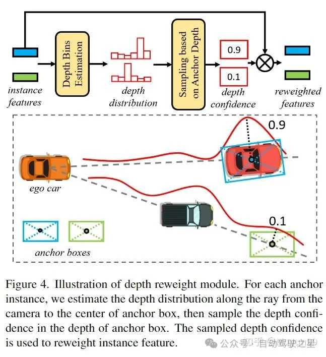 添加了实例级别的 Depth Reweight 模块作为显式监督,其中实例特征通过从预测的深度分布中采样的深度置信度重新加权。该模块以 Sparse 的方式进行训练,无需额外的 Lidar 点云的监督。