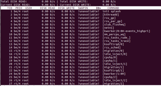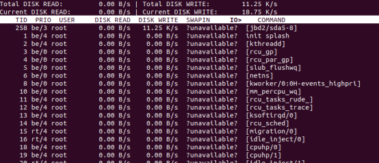 它提供了实时的磁盘 I/O 数据以及哪些进程正在进行 I/O 操作。