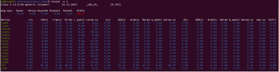 这个命令每秒输出一次磁盘 I/O 统计信息。