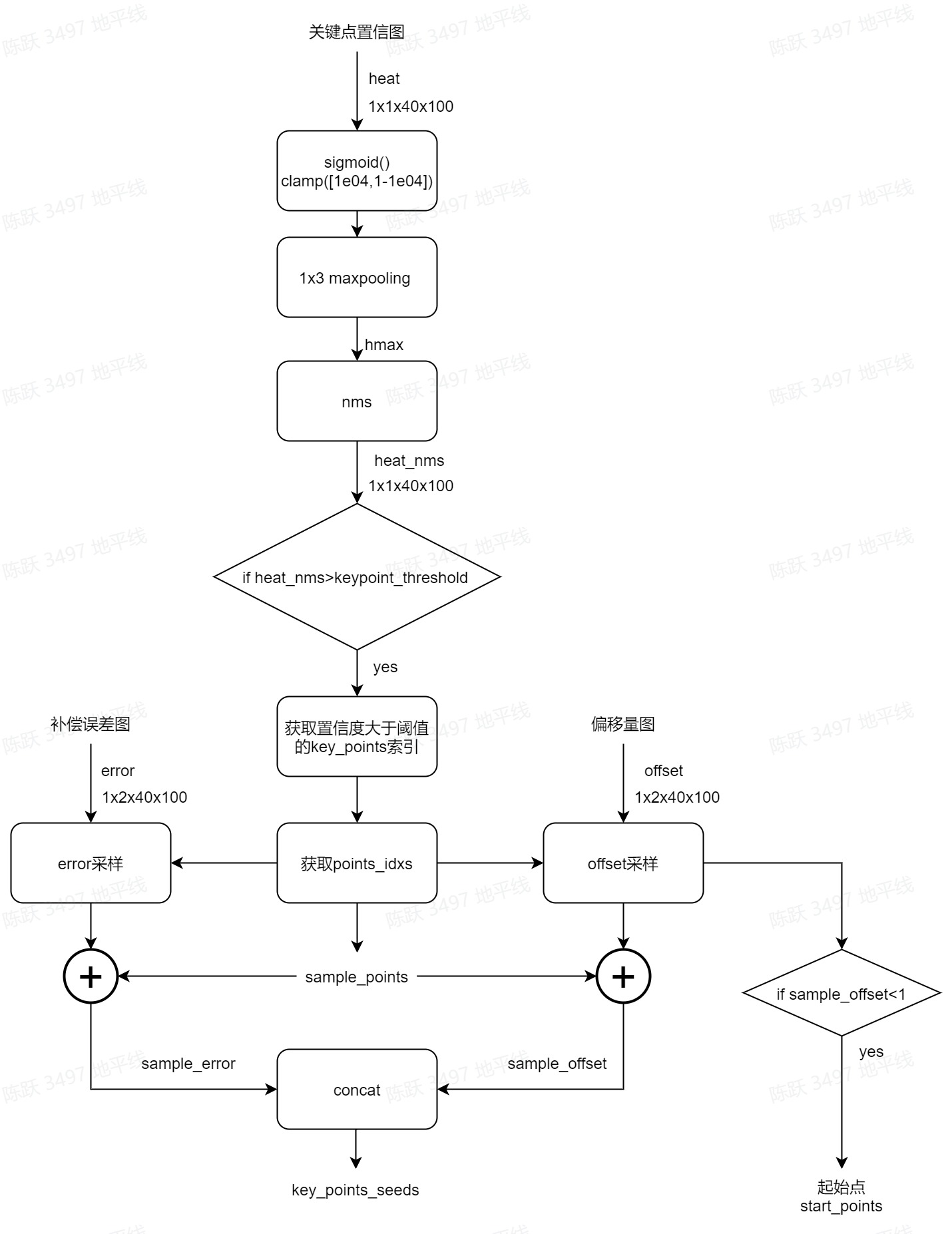 GANet利用一个关键点头(keypoint head)和一个偏移量头(offset head)来分别预测关键点的置信度图(confidence map)和关键点到车道线起始点的偏移量图(offset map),在推理过程中通过对这二者进行采样和组合,可以将关键点分配到所属的车道线,得到最终的车道线预测结果。