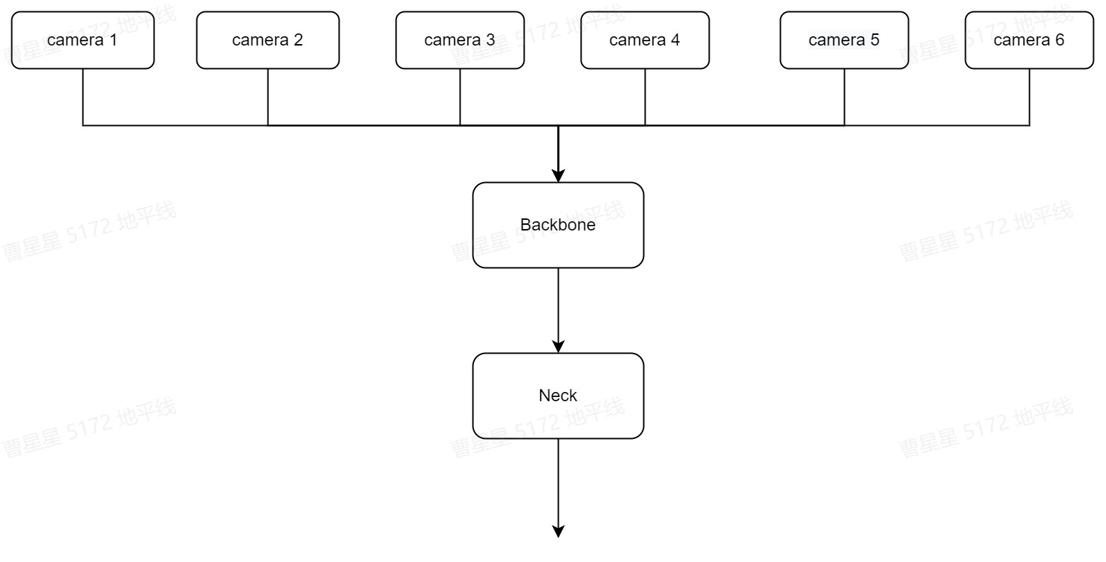 来自6个view的image作为输入通过共享的backbone(efficientnet)和neck(FastSCNN)输出经过encoder后的feature,feature_shape为(6*B,C,1/16H,1/16W)。encoder即对多个view的img_feature 做特征提取,过程见下图: