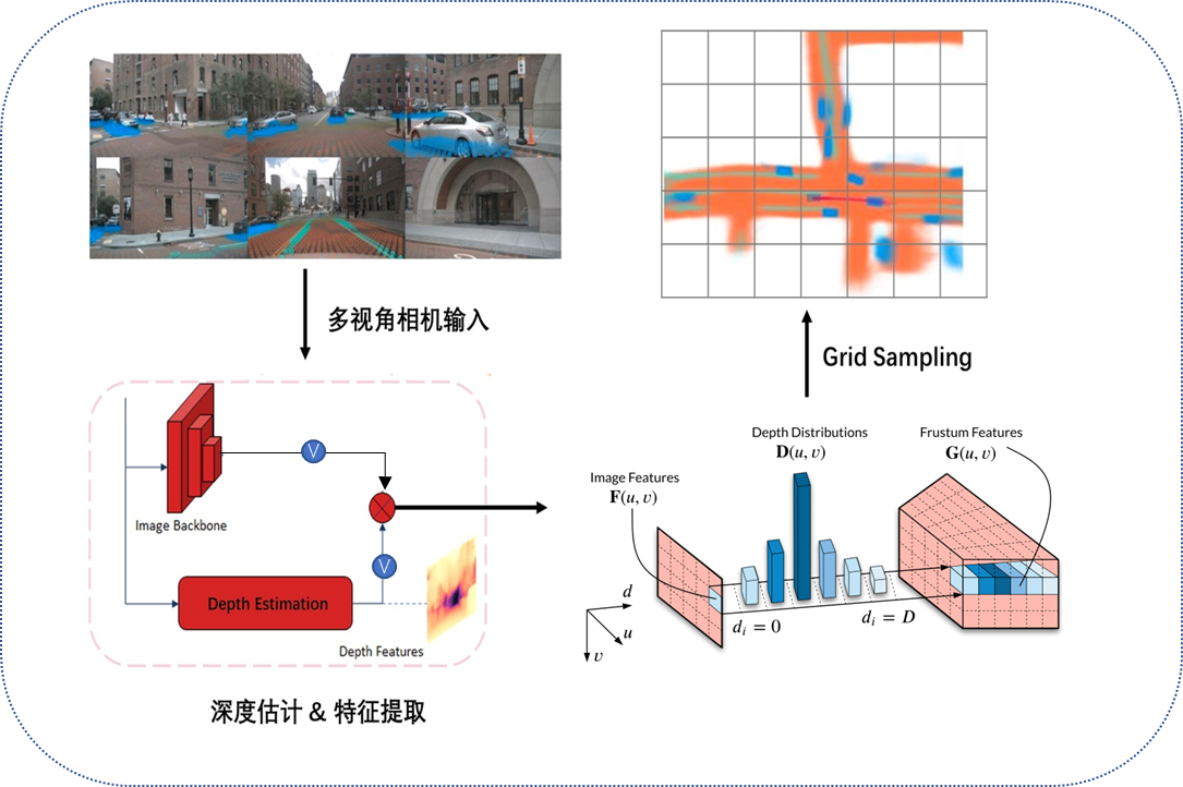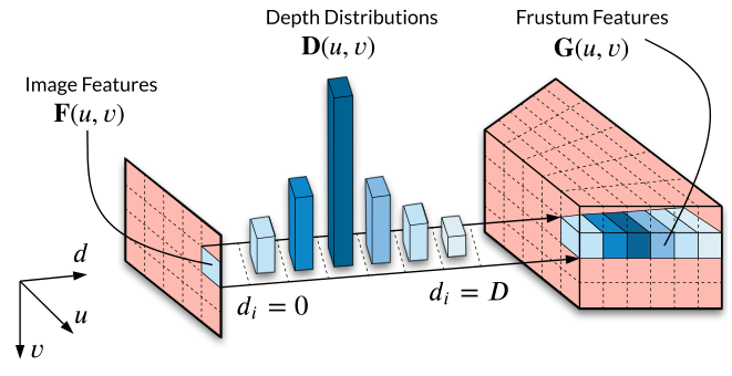 bev_mt_lss 使用的转换方法是LSS实现,流程如下图所示: