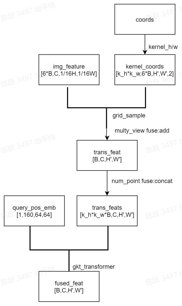 其中points的生成在将每个BEV网格coords根据相机内外参数获取采样点coords后,再对附近像素coords Kh×Kw核区域取点,最终的kernel_coords为[kernel_h*kernel_w,6*B,64,64,2]