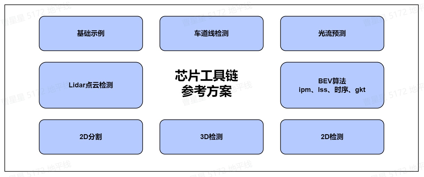 随着软件2.0的到来,自动驾驶感知算法层出不穷,随之也进入了“高阶”时代,但是算法发展快与芯片迭代慢的矛盾导致将算法部署和量产落地变得不那么容易,随之而来的是对技术和成本的大量投入。为了加速算法开发速度和在地平线J5芯片上的部署速度,芯片算法工具链提供了丰富的参考算法示例以提高适配和落地的效率,帮助使用者快速上手,让算法移植不再艰难。