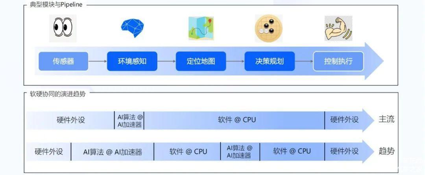 在自动驾驶的pipeline中,环境感知、定位地图和决策规划比较偏算法,两端偏硬件外设,这是由车的硬件架构决定。虽然pipeline在这几十年来已逐渐成型,在最近几年有了很大的演进趋势变化。从下方的图可以看出主流的方法只在环境感知中很窄的一段区间应用AI算法,而近几年的趋势中, AI算法在整个pipeline里的范围越来越大,这种趋势更好的表述为--软件2.0。深度学习作为“软件2.0”的重要技术,是自动驾驶发展的核心驱动力,在感知层面大幅提高图像识别准确率,在决策层面深度强化学习有效提升算法能力。由此自动驾驶在深度神经网络算法出现后开启了加速式发展,感知算法从传统的2D检测、分割转变为大模型趋势。其中以Transformer为代表的大模型成为自动驾驶感知中的热门算法,与此同时也诞生了新的感知范式-bev 感知。