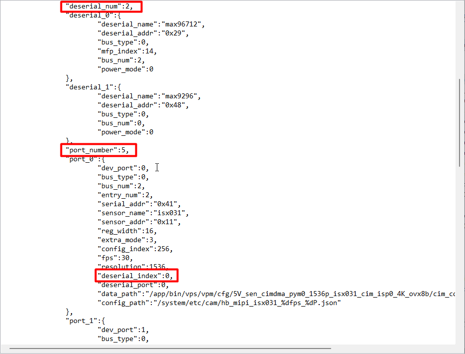 修改解串器数量,port数量,以及每路摄像头对应的deserial_index,一共修改5路
