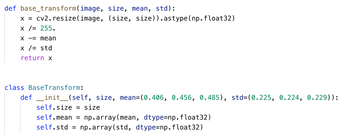 HzPreprocess节点中的计算公式为:norm_data = (data -mean)*scale,以yolov3为例,其训练时的预处理代码为: