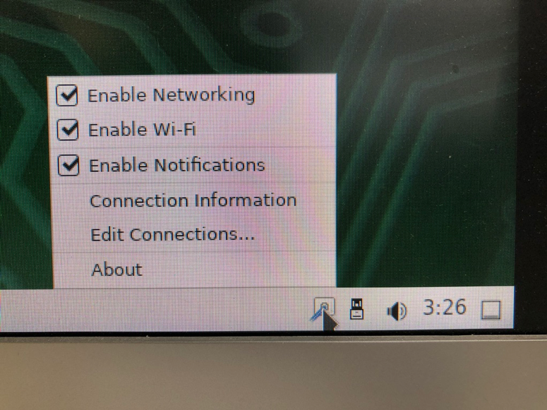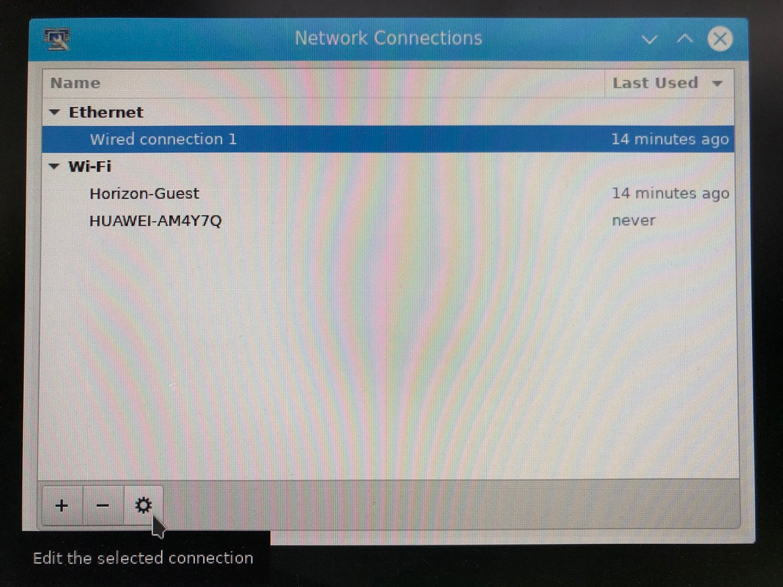通过HDMI接入显示器,通过usb hub连接键盘鼠标,410c上电之后进入板子的图形界面,右键点击右下角网络连接图标,点击“Edit Connections...”打开配置界面