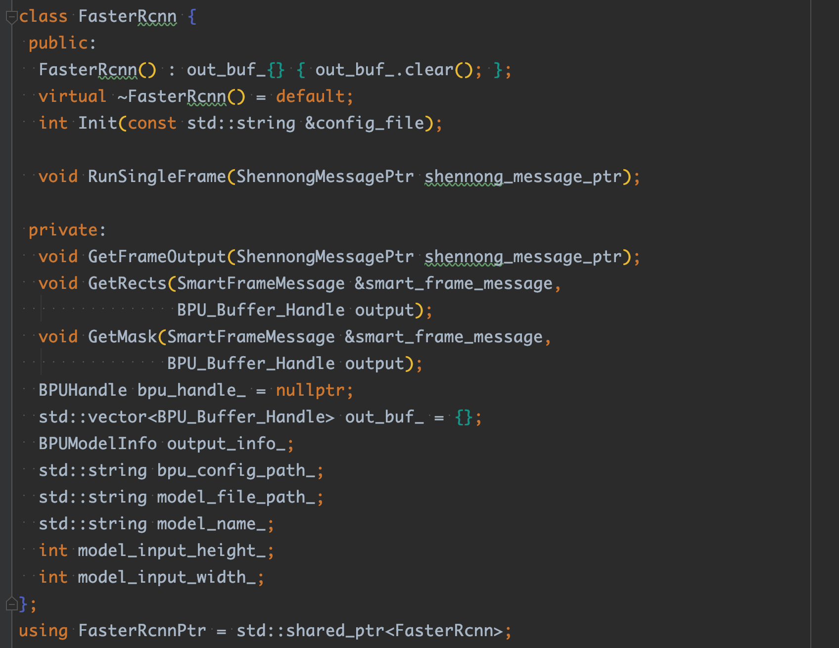 我们可以大致看一下fasterrcnn.h的接口设计: