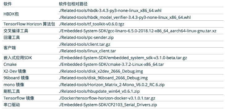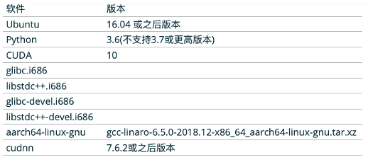 在算法部分主要涉及到到是HBDK包,TensorFlow Horizon算法包,这些在TensorFlow镜像(docker)里面都已经包含。所以直接安装docker就可以进行算法相关的模型训练和编译了。要特别提到的是其他环境的支持,如图9,需要Python3.6版本以及CUDA10.