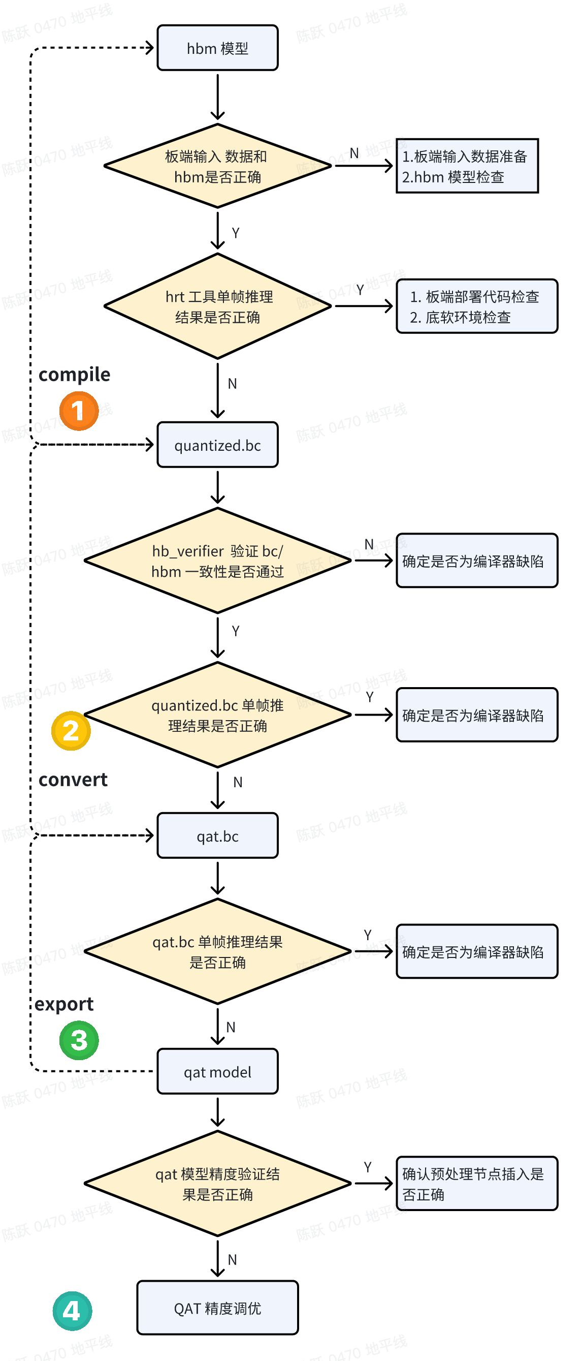 - 如果quantized.bc精度异常,而 qat.bc精度正常,则说明是 convert定点化引起的量化误差较大,需要提交地平线技术人员分析;