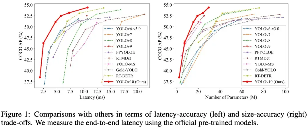YOLOv10 的突破就在于从后处理和模型架构方面进一步提升了 YOLO 的性能 - 效率边界。