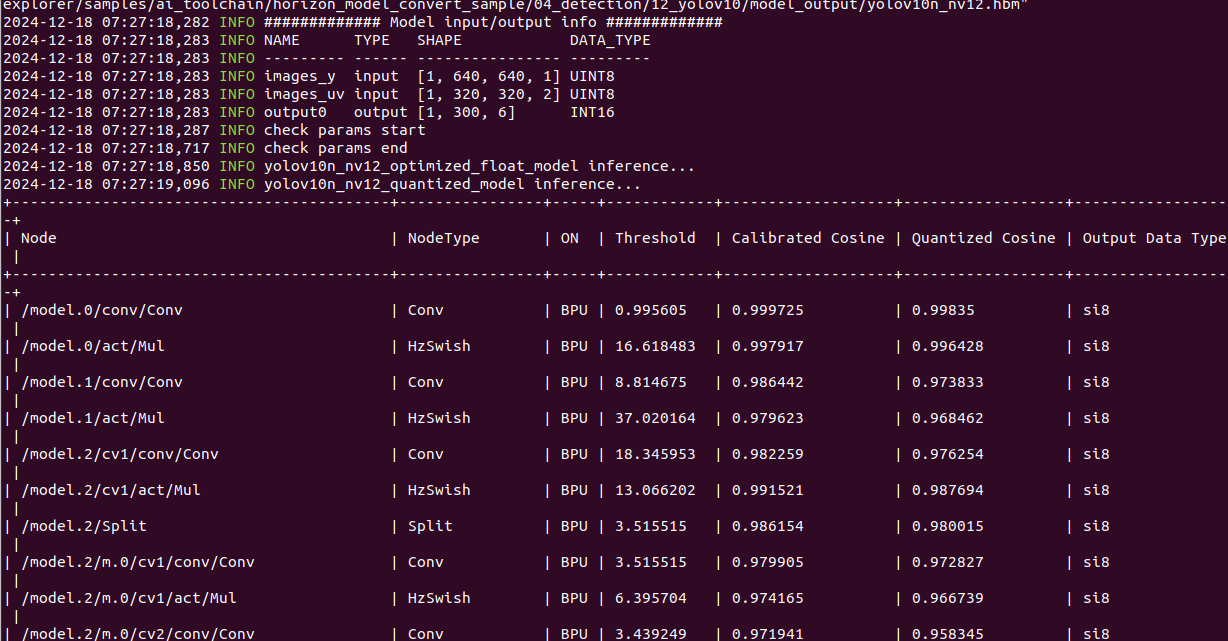 准备完校准数据和yaml配置文件后,即可一步命令完成模型解析、图优化、校准、量化、编译的全流程转换。