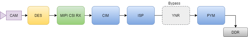 前级为ISP输出YUV图像,online到YNR进行降噪处理,处理后online送给PYM;